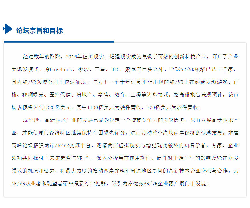 【论坛报名】2016两岸(厦门)VR/AR产业高峰论坛即将启动